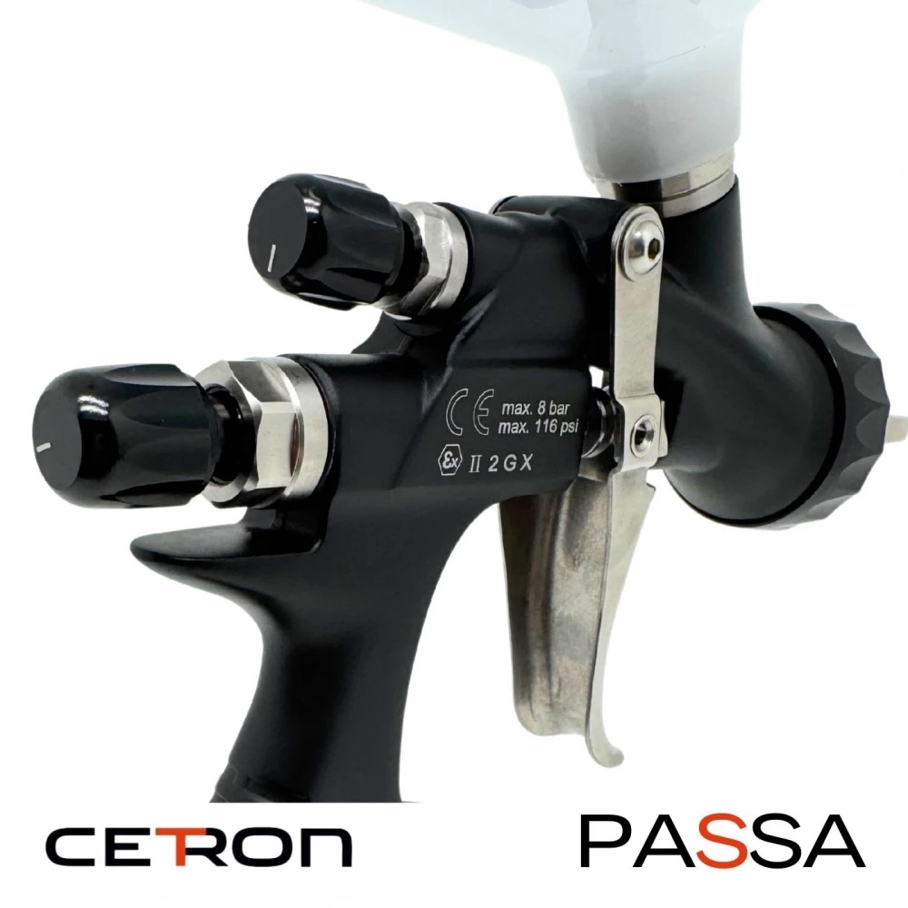 Уникальный дизайн CETRON PASSA выделяет его среди аналогов, сочетая практичность и стиль. Совершенно новая конструкция воздушного клапана обеспечивает стабильность воздушного потока, необходимую для равномерной атомизации материала, и компенсирует перепады давления в системе подачи воздуха. Отсутствие резиновых уплотнений снижает вероятность неисправностей и значительно увеличивает срок службы устройства.
