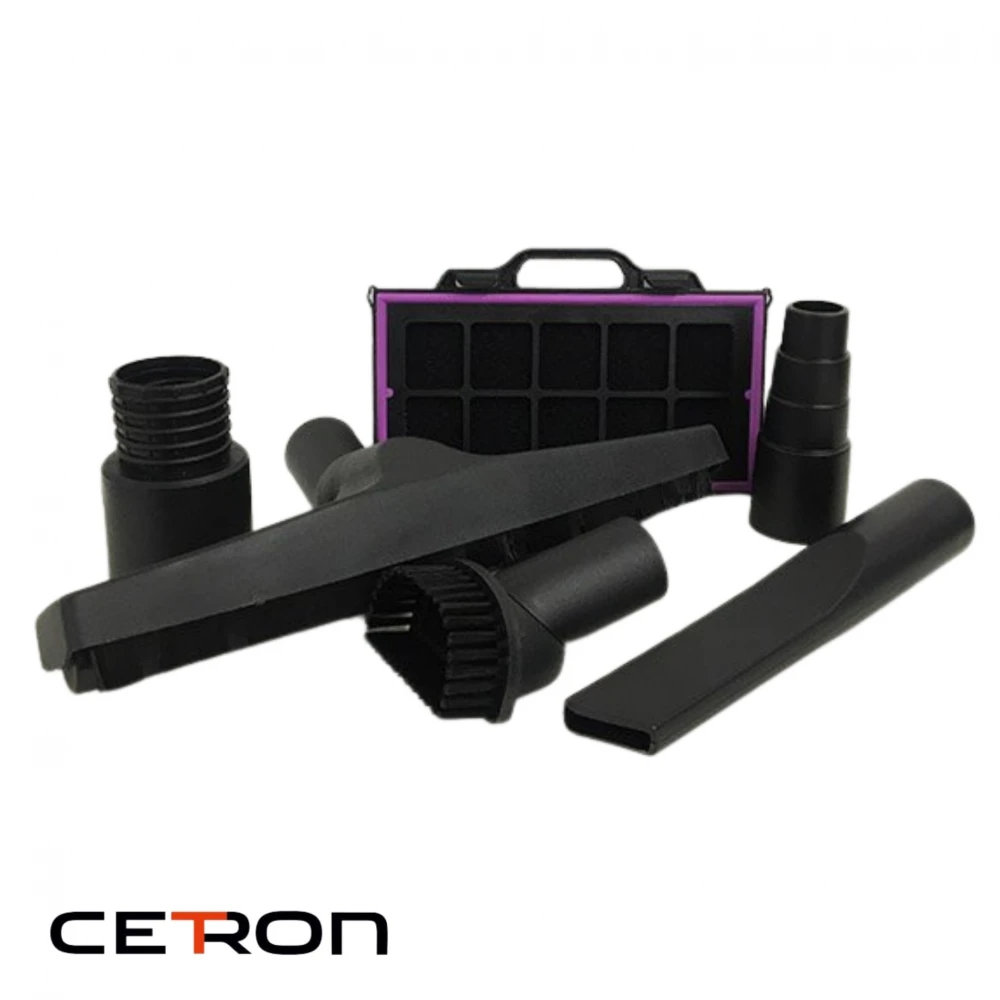 - Расширенный набор аксессуаров – антистатичный шланг длиной 2 м, телескопическая труба, различные щетки и насадки облегчают очистку труднодоступных мест и просторных помещений.